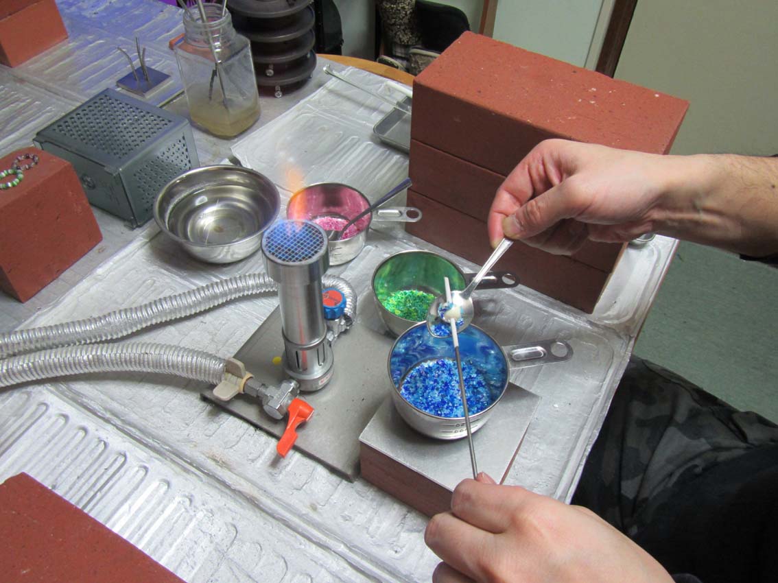 とんぼ玉歴19年のベテラン講師の工房で、他では味わえない体験を思う存分にどうぞ!ガラス細工作り
