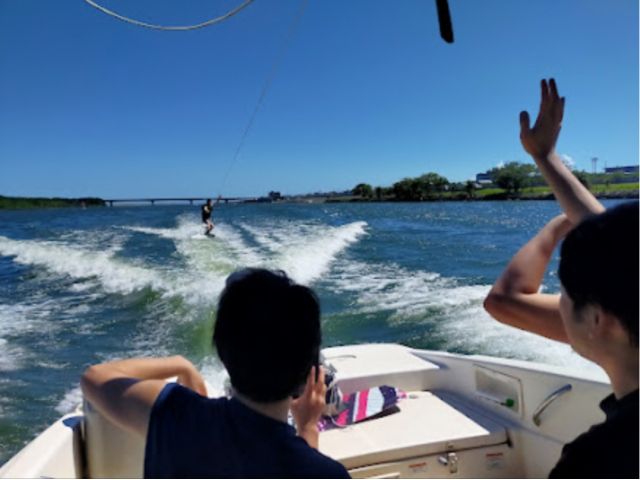 ウェイクボード専用のボートにて、専任のコーチがアドバイスいたします。