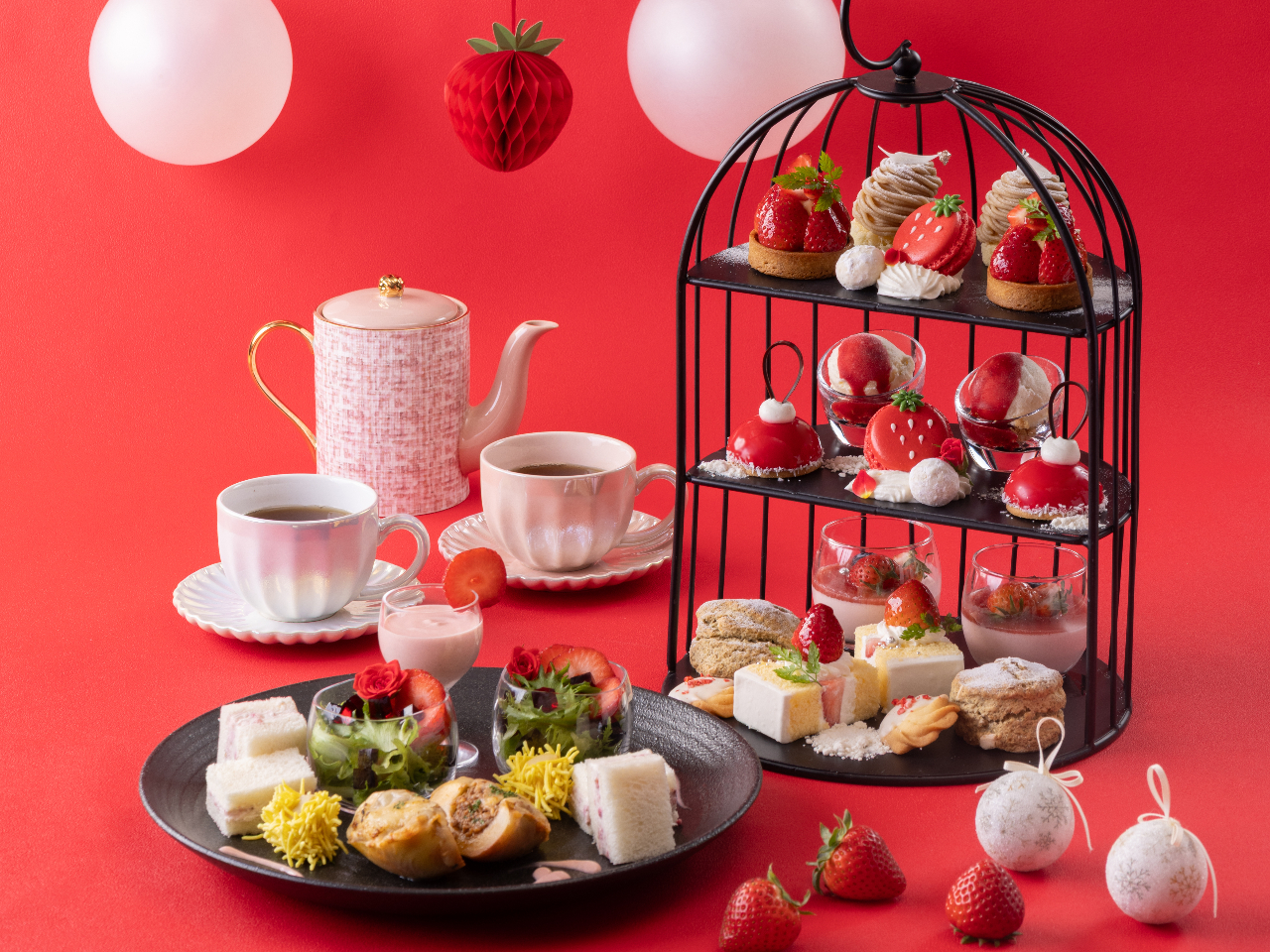 苺で魅力的に赤く彩られた誘惑のアフタヌーンティー。ぜひ、カフェ・イン・ザ・パークで優雅なティータイムをお過ごしください。バイキング・ビュッフェ・ホテルレストラン