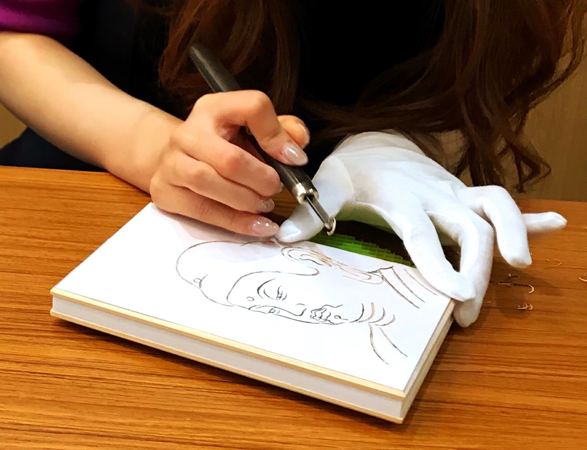 彫刻刀で木製ご朱印帳の表紙部分(ヒノキ材)を彫って頂きます。10:30スタートなので体験後京都探索する時間も確保できます!その他クラフト・工芸