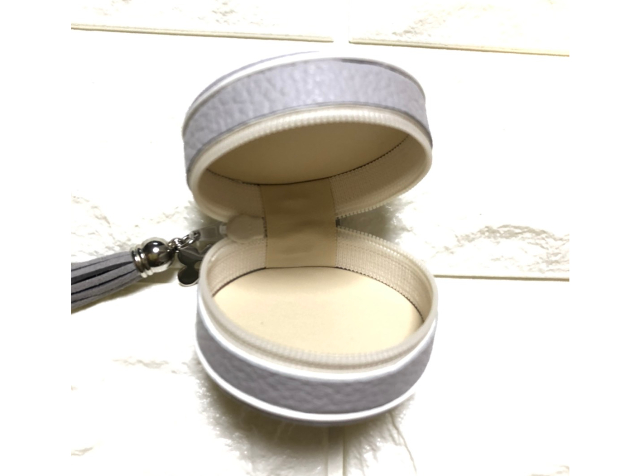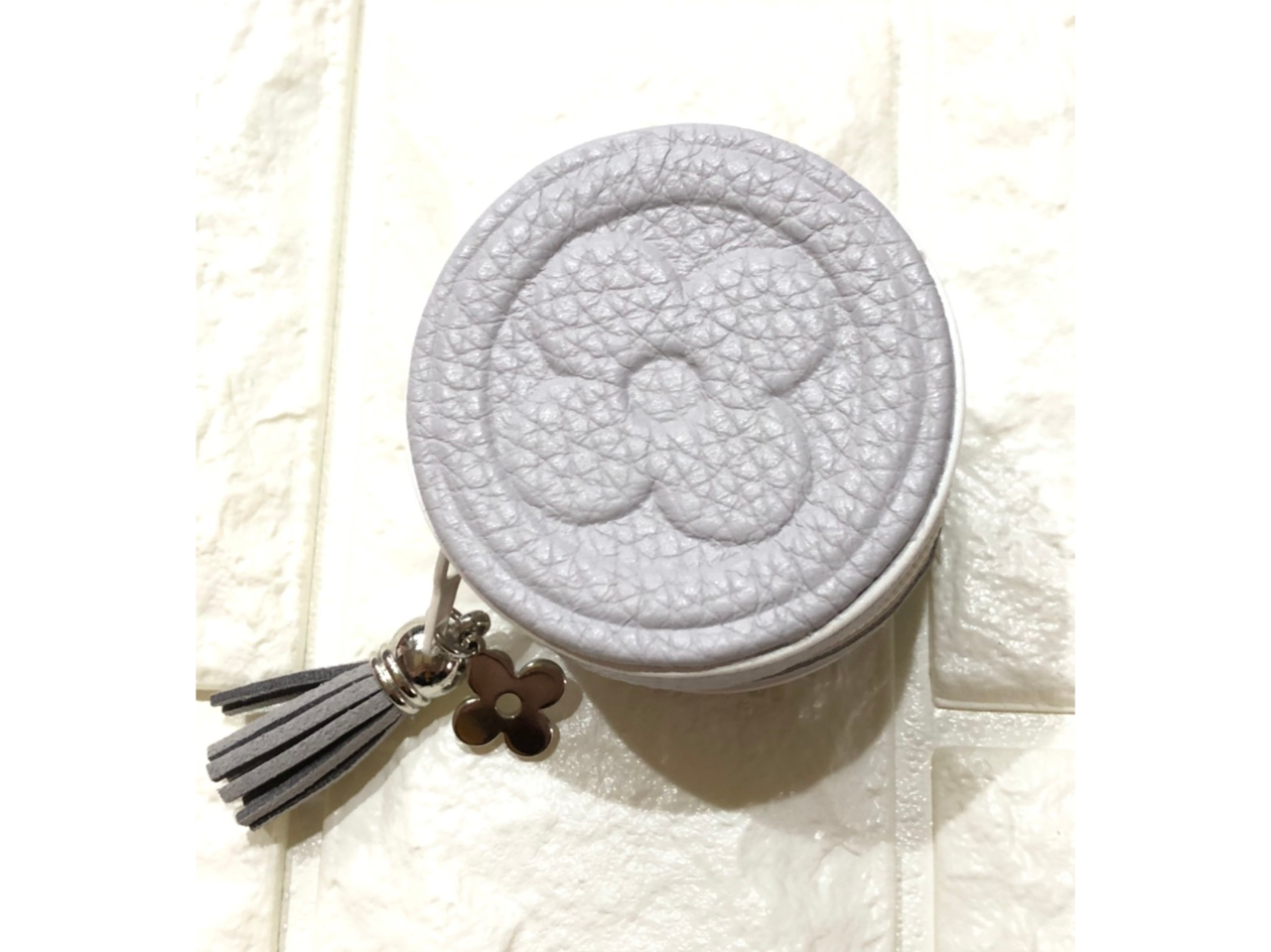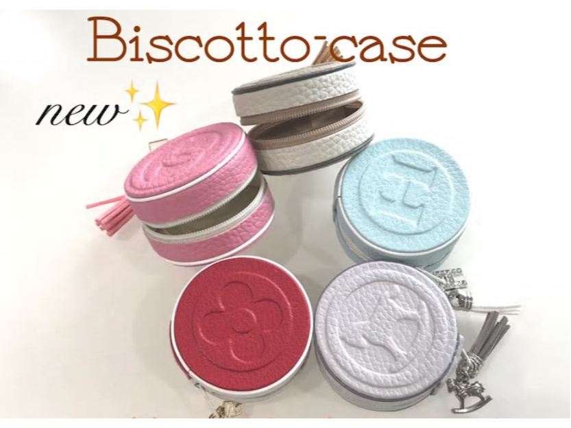 ビスケットのような見た目の、かわいらしい革の小物入れです♪