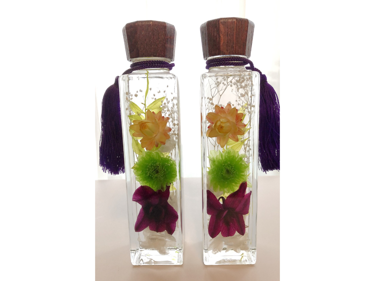 ◎お花のイメージが強いハーバリウムですが、水引やちょうちょも入れることができますハーバリウム