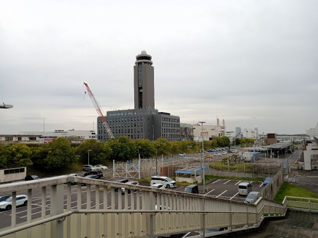 (5)「芝山千代田駅」ホームから整備地区や、空港の遠景を見学