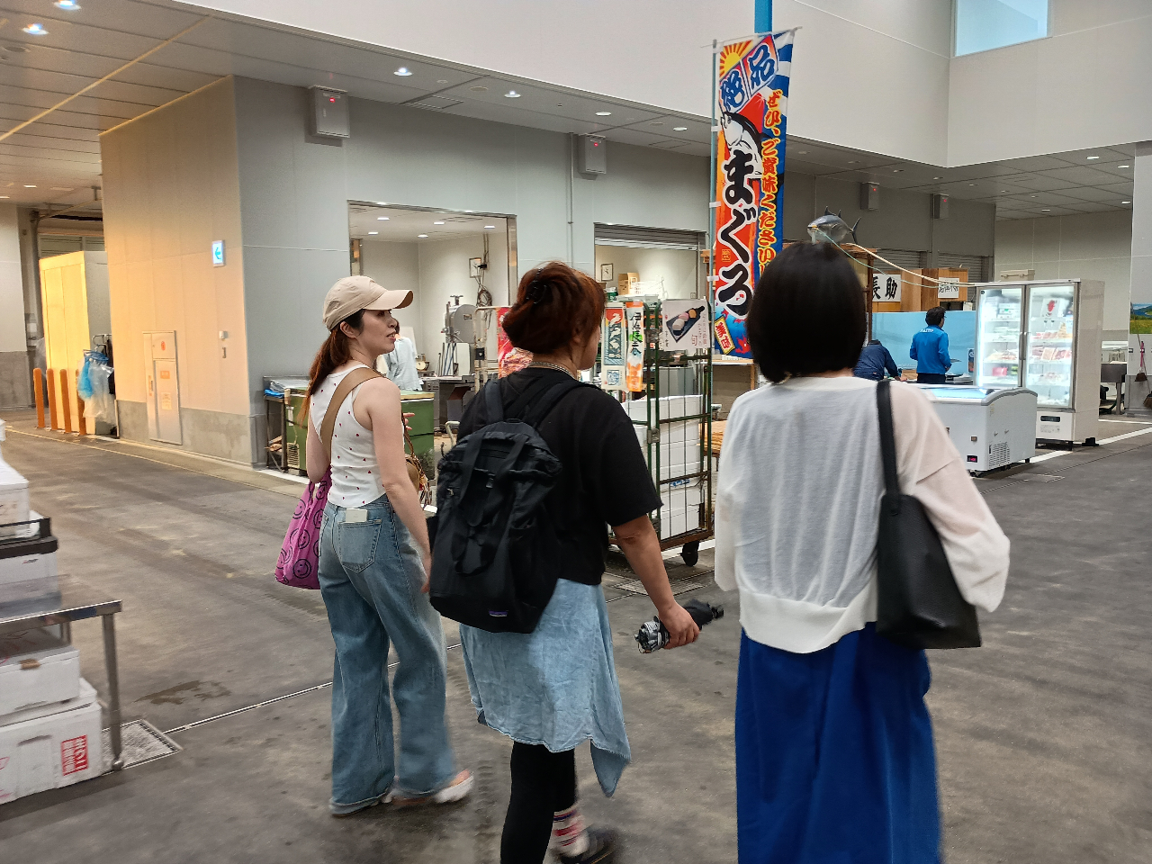 2階に見学ルートが整備されているため、市場の構造や流通の仕組みを知ることができます。開市日には、新鮮な水産物や青果物を購入することも可能ですが、営業しているのは一部の店舗のみです。(市場内は現金払いのみ)