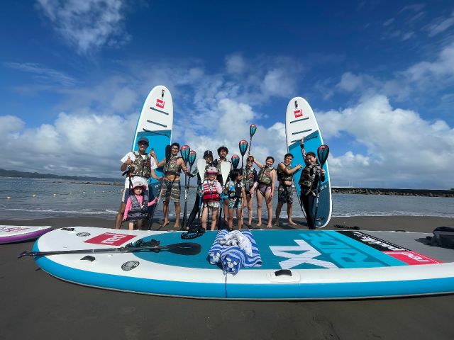 おっきなSUPボードで、みんなで力を合わせて海の冒険を楽しめちゃうコース。