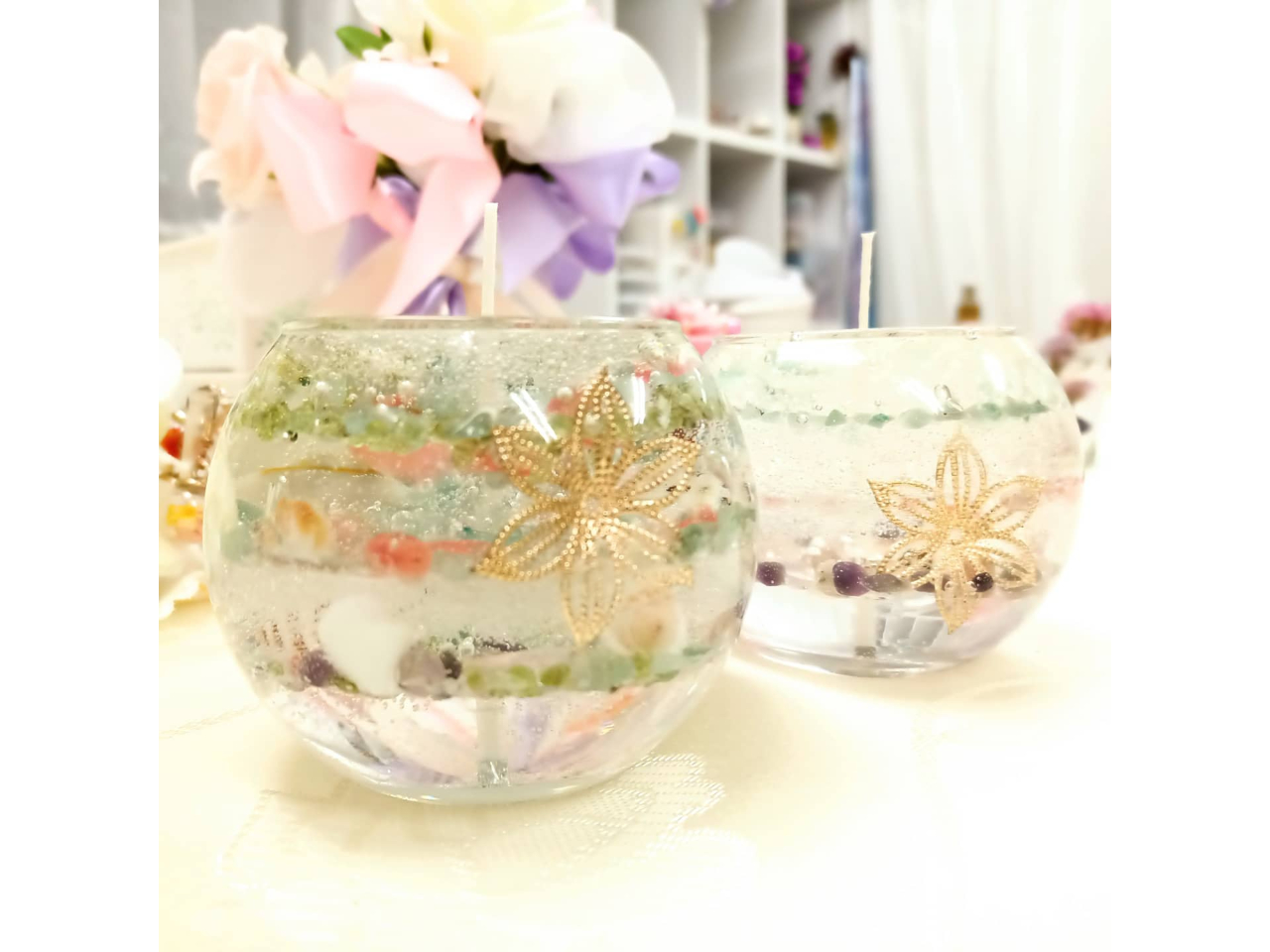 どんな影が出るかドキドキワクワク♪【ジュエリーポップキャンドル】きらきらプルプルジェルと天然石が幻想的♪ 〜女性 カップル ファミリー 記念日等に