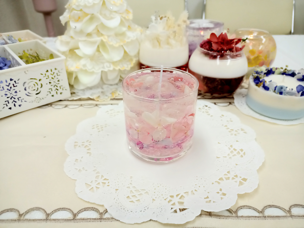 災害用キャンドルにも使用されているジェルワックスを使って華やかなお花のキャンドルを作りましょう。