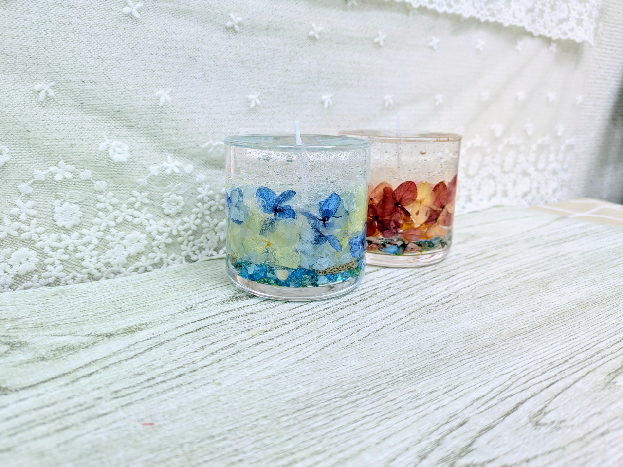 とっても珍しいクラック水晶とあじさいキャンドル リメイク可!水晶からフワッと色が広がります。〜女性 カップル ファミリー 記念日等にのプラン詳細