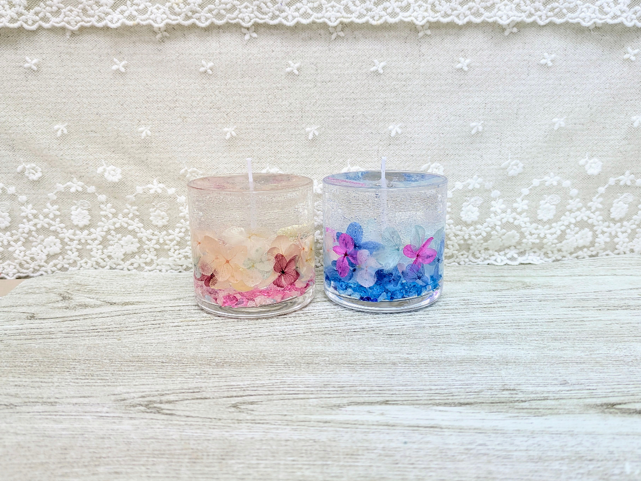 とっても珍しいクラック水晶とあじさいキャンドル リメイク可!水晶からフワッと色が広がります。〜女性 カップル ファミリー 記念日等に
