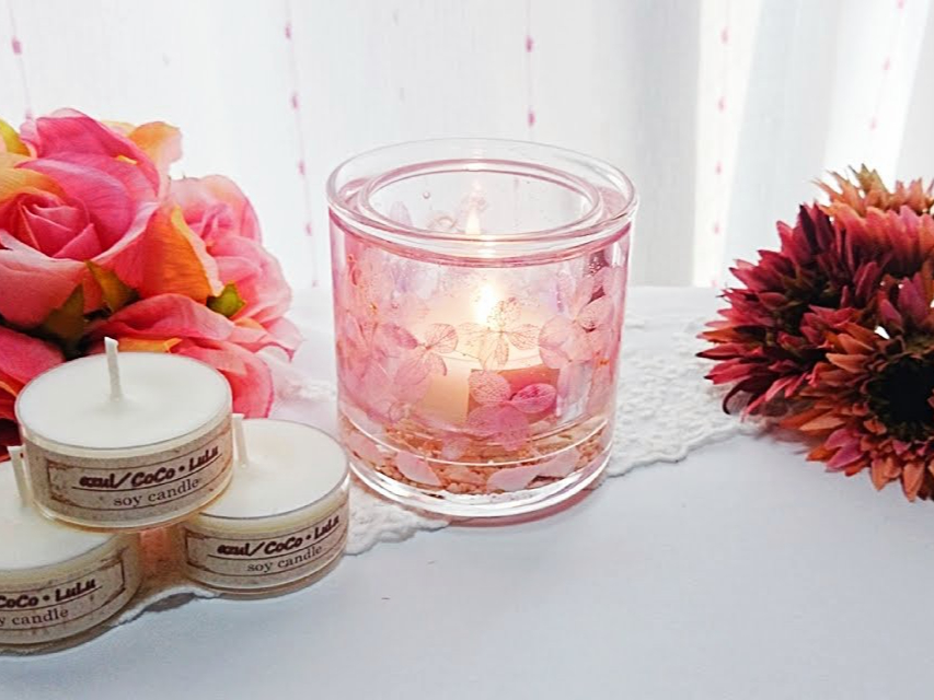 ・本物のお花で!【お花見キャンドル】押し花や紫陽花を使用していつでもお花見を楽しんで♪ 〜女性 カップル ファミリー 記念日等に