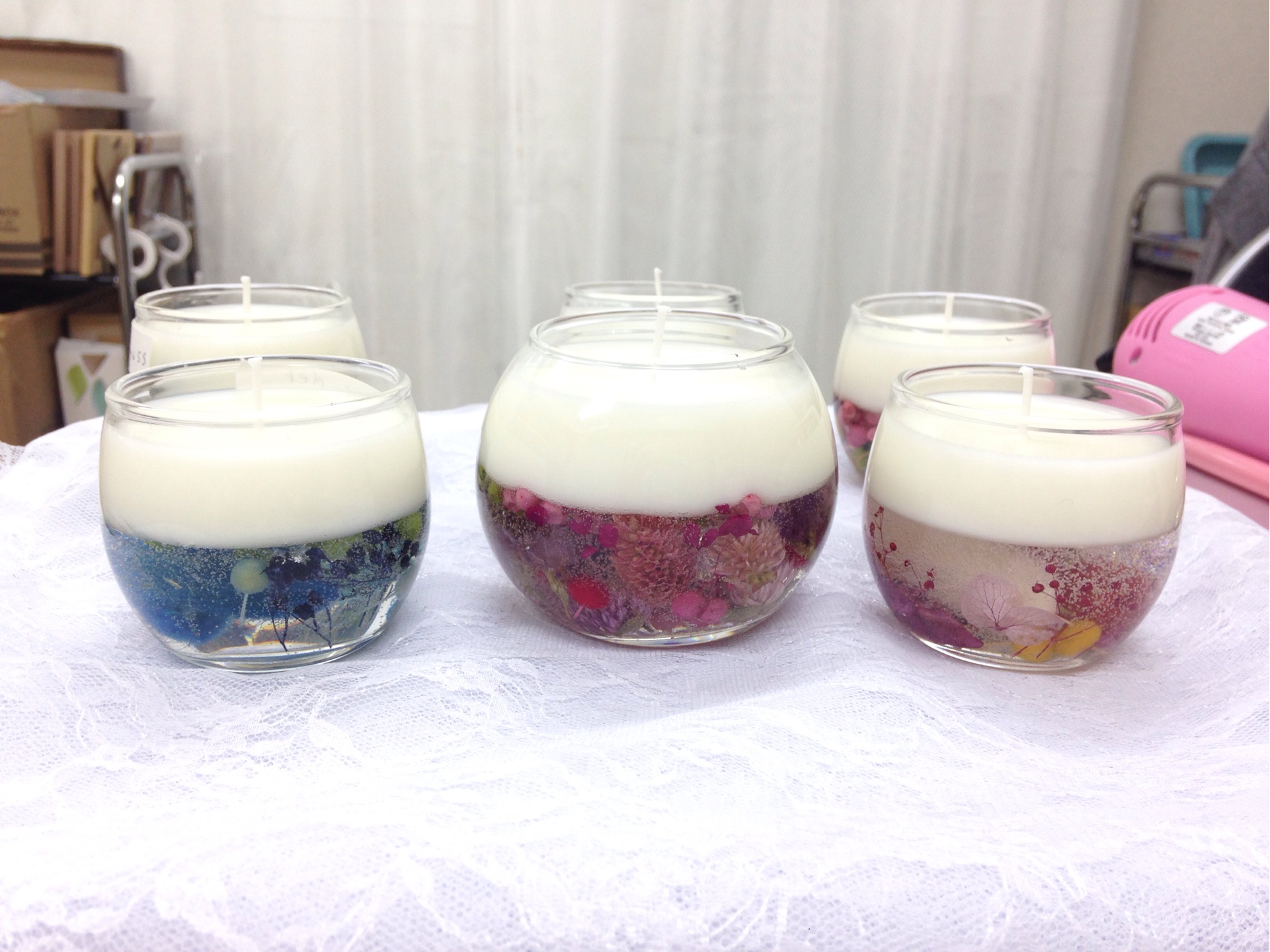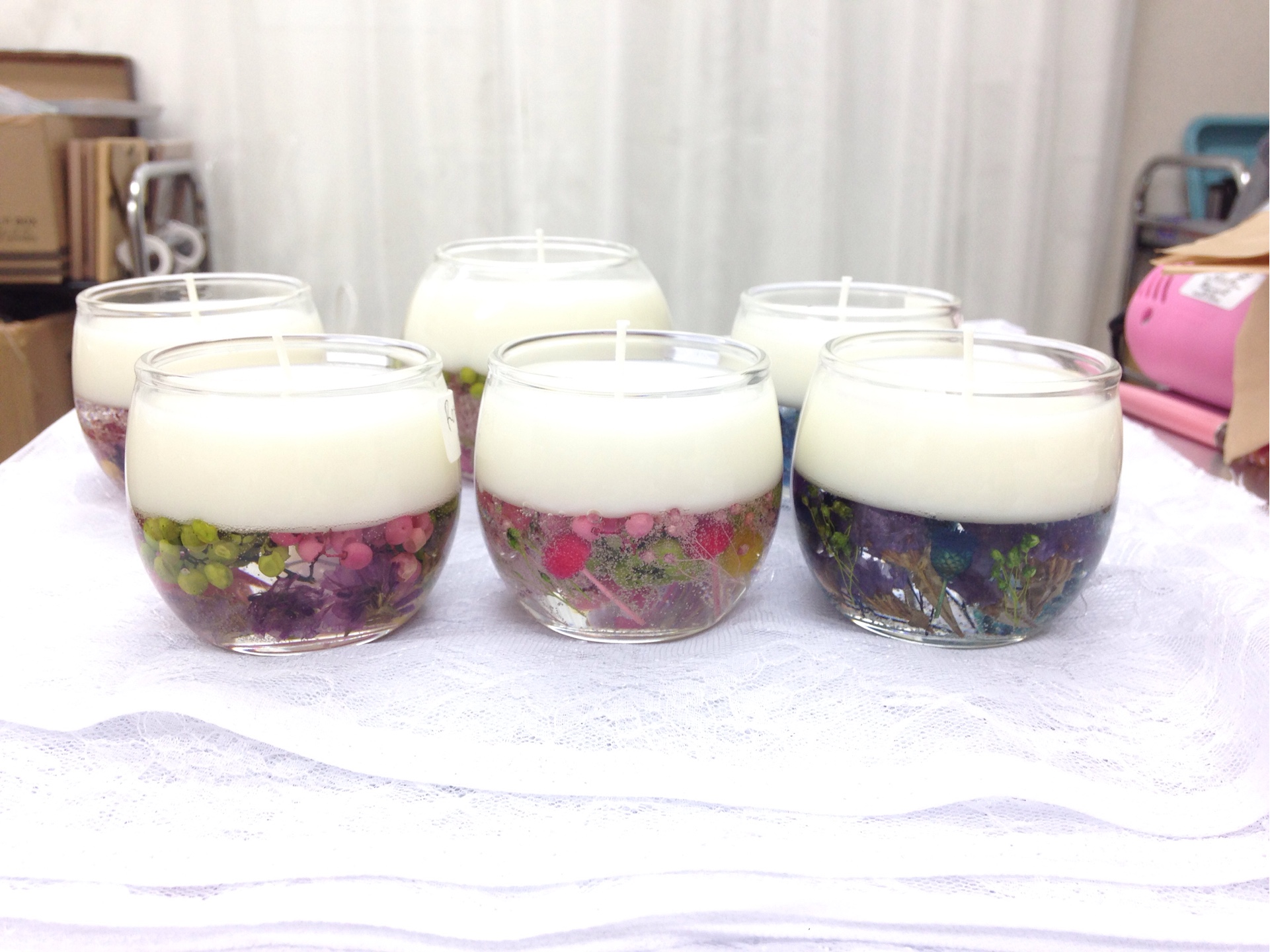 人気の丸グラスもあります!キャンドル作り(アロマキャンドル等)