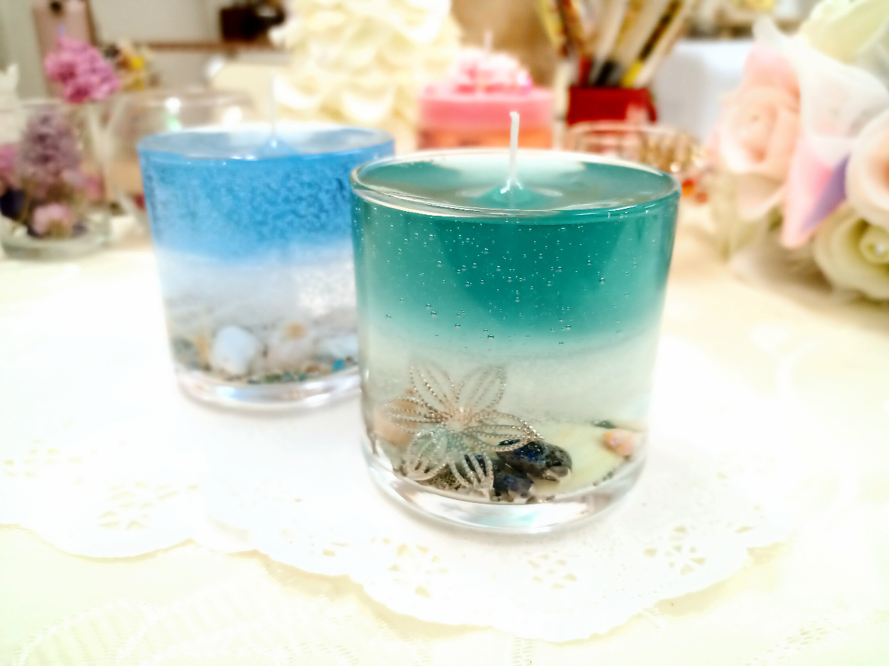 青く輝く海もいいですが、ちょっと色を変えてオレンジや黄色の海などオリジナルデザインを楽しんでください。キャンドル作り(アロマキャンドル等)