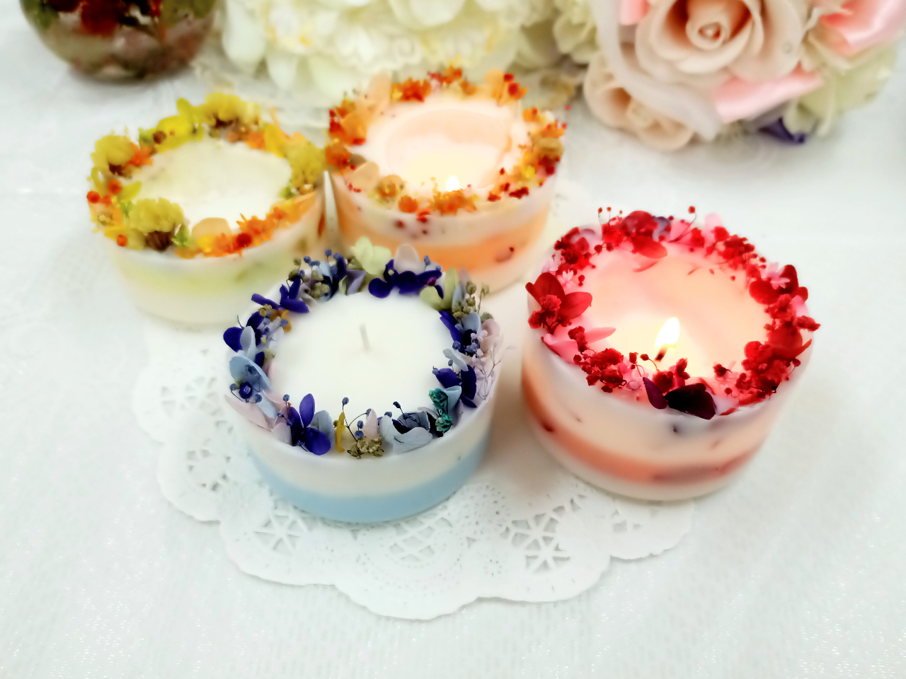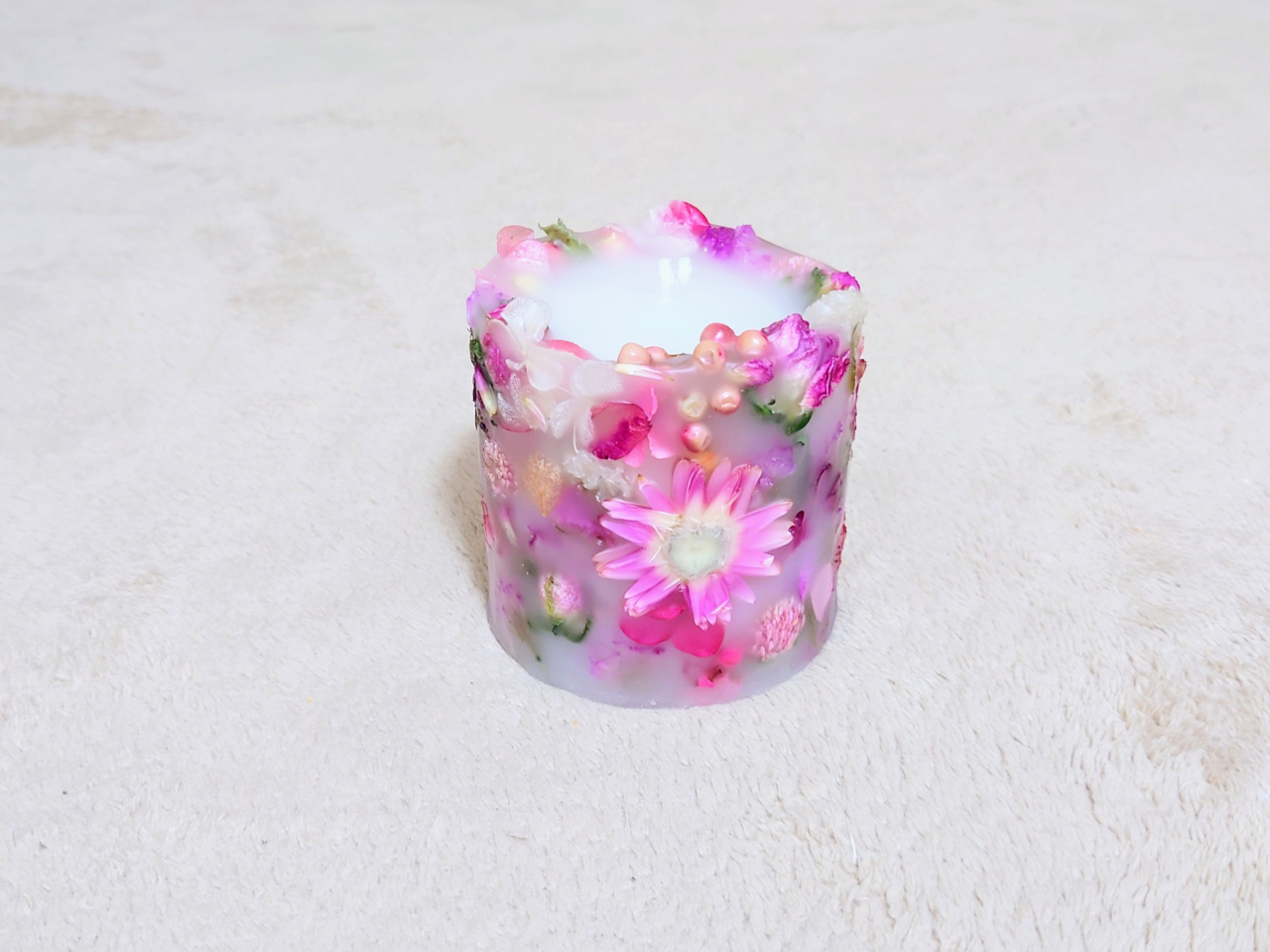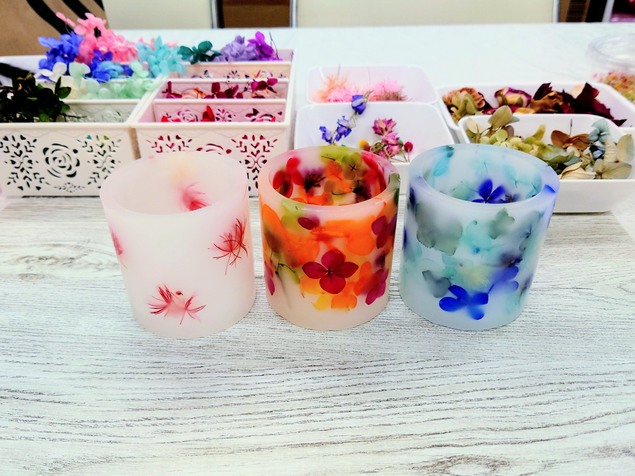 ・ふんわりアロマが香る【お花いっぱいのボタニカルキャンドル】 〜女性 カップル ファミリー 夏休み制作 プレゼント等に