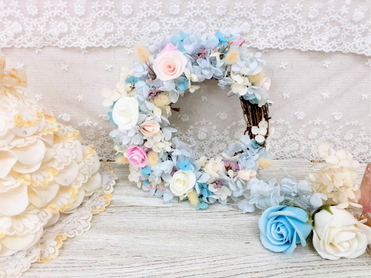 デパートやお花屋さんで見るあのふわふわリースを自分の感性で形にしましょう。