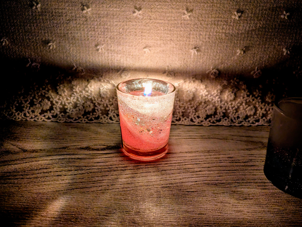 火を灯すとラメやホログラムが溶けだしてゆらゆら動きます。