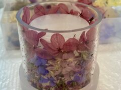 LEDライト専用のキャンドルホルダーを作りました。あらかじめ用意された型に色とりどりのドライフラワーなどをピンセットや爪楊枝を駆使して入れていくだけです。ロウは先生が入れてくださいます。ロウを入れて固まるまでに1時間かかるのでその間は外に出ます。私は近所の店でご飯を食べて時間を潰しました。思ったより綺麗にできて満足です。初めてでしたけど楽しかったです。