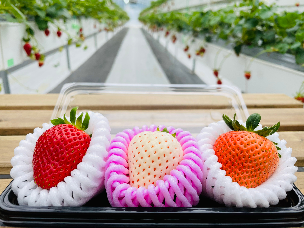 ▼赤(とちおとめ・あすかルビー)白(エンジェルエイト)ピンク(桃薫)の3色♪