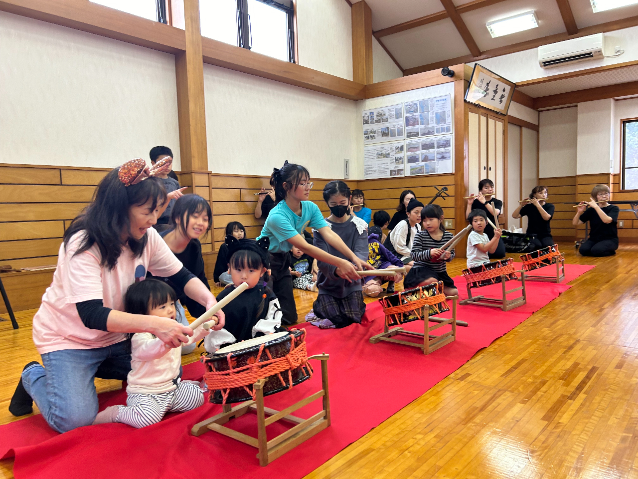 唄と踊り、三味線、笛、お好きなものを体験できます。