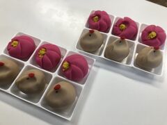 桔梗と手毬、2種類の生菓子を教えてもらいました。初めての作業だったので難しかったけど、丁寧に教えてくださり、手助けもしてくださいましたので、きれいに仕上げることができました。