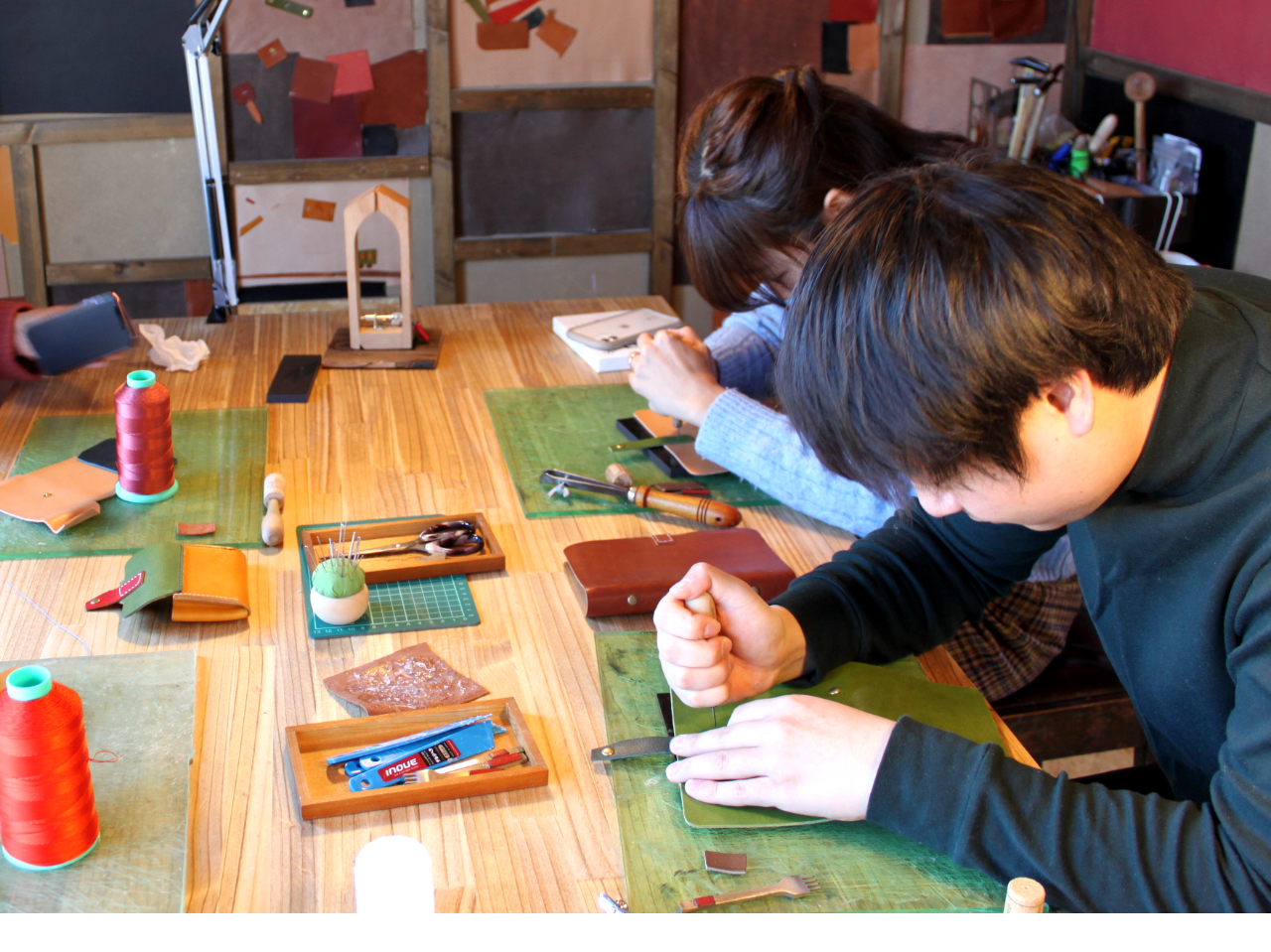 革の香りのするアトリエで非日常な時間をお楽しみください。レザークラフト
