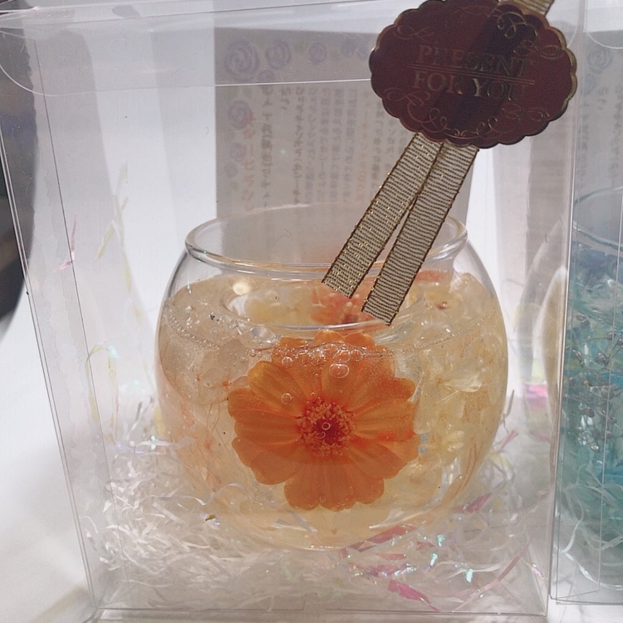 透明の専用ジェルを使って作られるキャンドルで、見た目はまるでゼリーのようにプルプルしています。