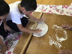 子供二人、順番に混ぜたり生地を伸ばしたり楽しそうでした!