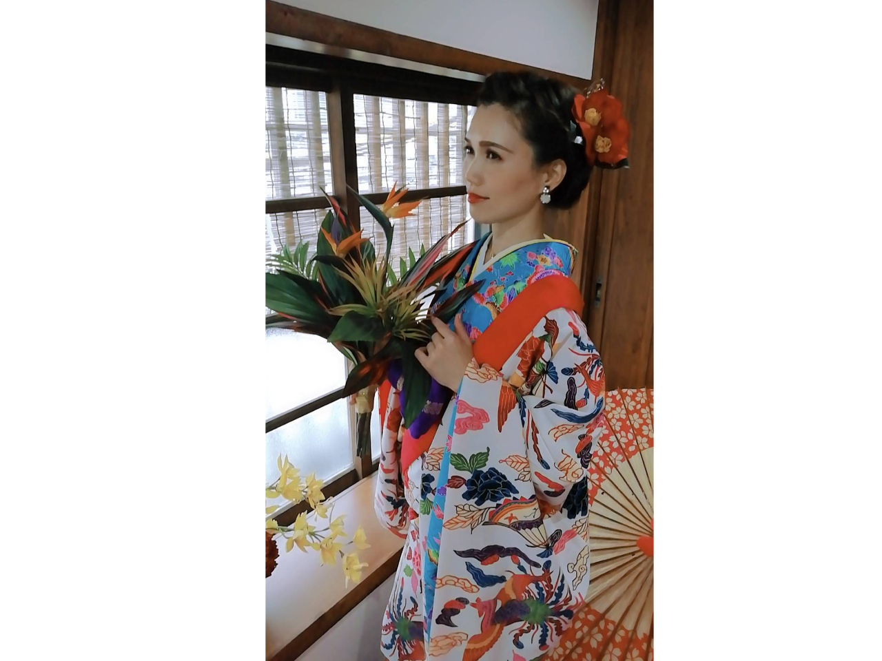 琉装体験★本格着付け『打掛』『着物』で本格派写真《ヘアセット&口紅&着付け&撮影》全てコミコミ♪カップル・ファミリーにおすすめ!
