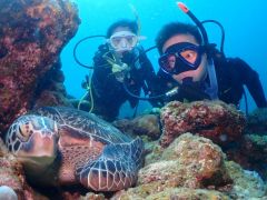 先日は初めてのダイビングで緊張しておりましたが、親切丁寧なご指導をしていただきありがとうございました!とっても素敵な思い出になりました。ウミガメも見れてとても嬉しかったです^^写真や動画撮影も綺麗に撮っていただき大満足でした!