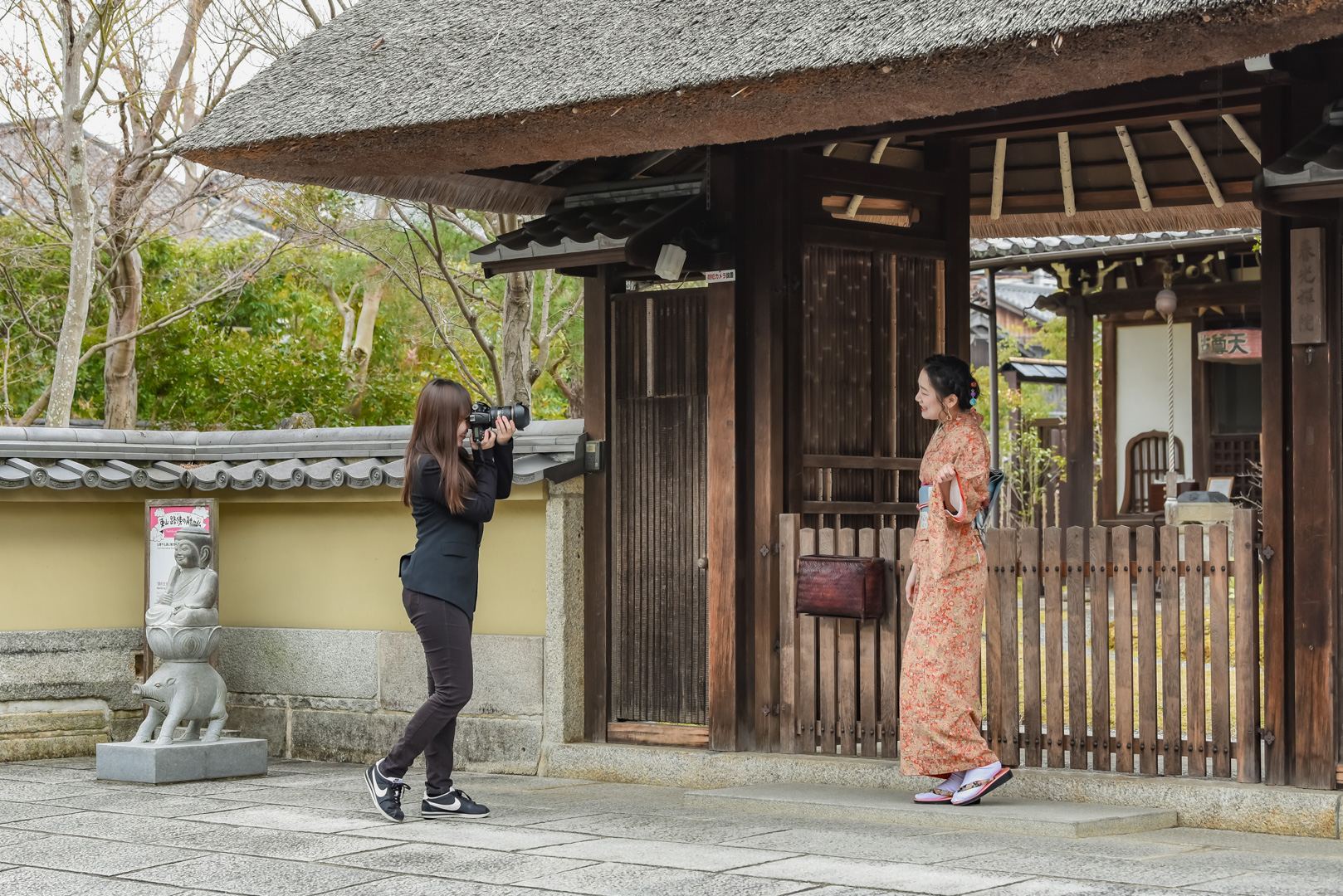 A京阪祇園四条駅から徒歩5分の辰巳大明神前(京都市東山区元吉町59)でカメラマンと待合せ