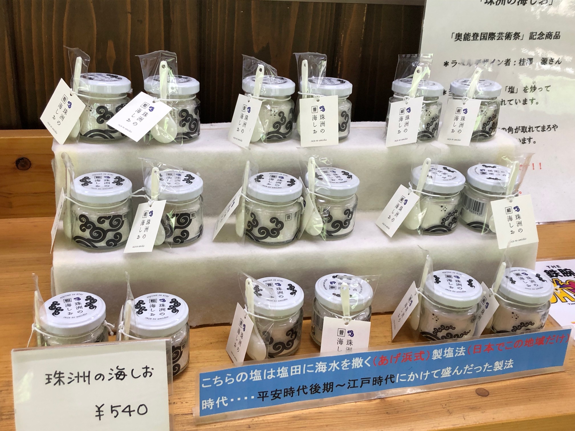 ◆売店では、珠洲製塩の各種塩の他、にがり・2017年に珠洲製塩の塩を使ってジェラート大会日本一に輝いた「塩アイス」も販売しています♪