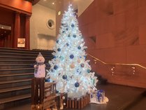 正面玄関では、白く輝くクリスマスツリーと、かわいらしい雪だるまがお客様をお出迎え。