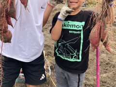 初めての来園は数年前。それから仕事の関係でギリギリにならないと予定が組めずで予約が取れない年が続き、今年やっと予約がとれたと思ったら残念なお天気で…延期希望の連絡ではピンポイントにも関わらず快くお受けしてくださりやっと行くことができました!お芋やお野菜はもちろんのこと何よりのお気に入りポイントはお人柄です!生き物大好き、ちょっぴり人見知りな我が子が勇気を振り絞ってお兄さんに声をかけると、カマキリ探しをいっしょにしてくださいました!しかもカマキリポーズをしたりして子どもは心を鷲掴みにされ、夫婦でその光景を楽しませて頂きました!5分もしないうちにカマキリを見つけることができました!自然いっぱいで安心して自由に遊べる場でもあります!帰り道はお兄さんだいすき~とお芋より何よりお兄さんたちとのふれあいが1番の思い出となったようです!来年もぜひお願いします!