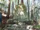 多富気は「たふけ」と読みます。大門坂を上る途中、夫婦杉を少し過ぎたところにある王子社跡です。社殿や祠など建物らしいものはなく、多富気王子社跡と刻まれた石碑と解説パネルがあるだけです。明治時代初期までは社殿があったので、石段も残っています。