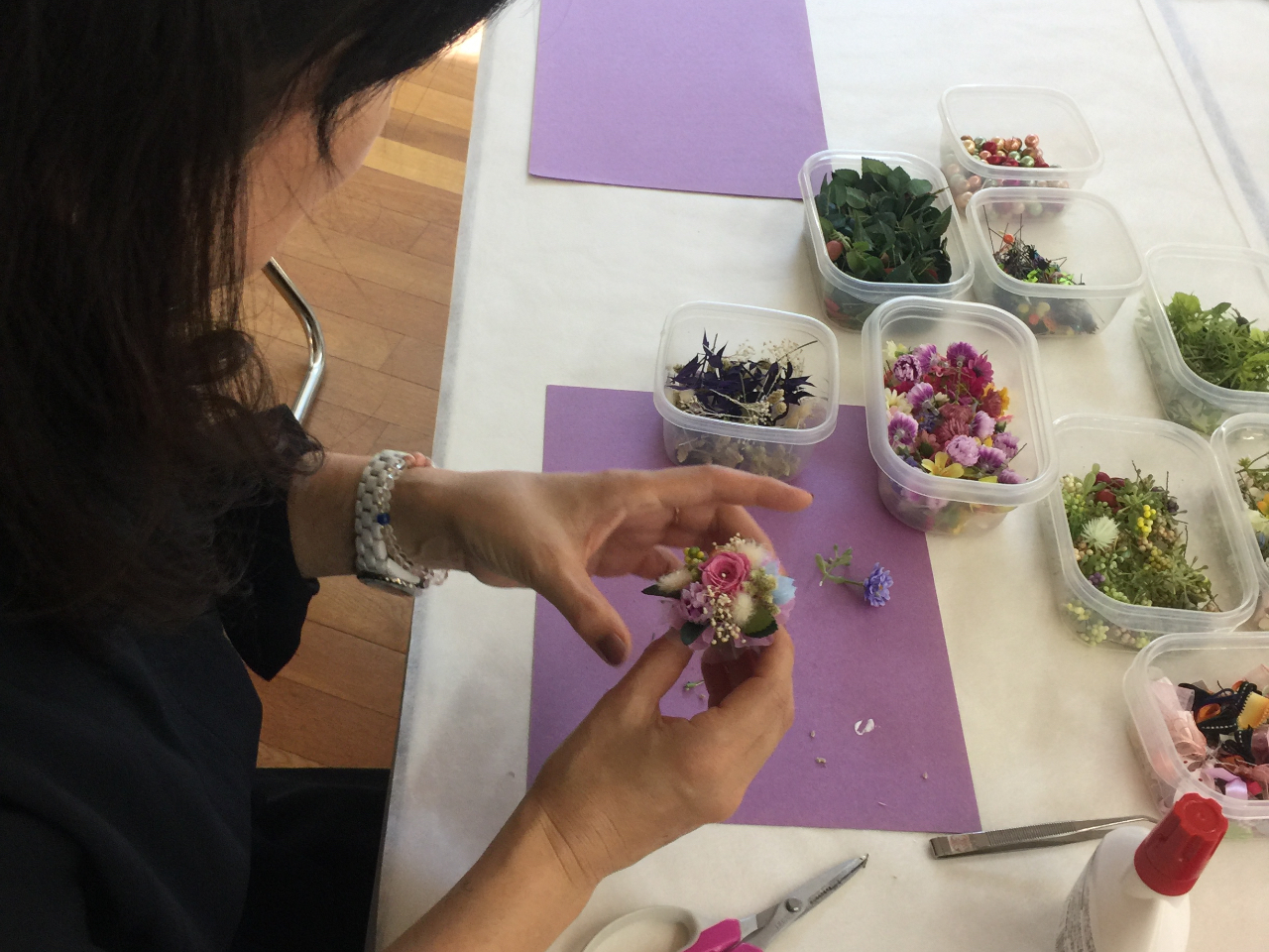 以前ハーバリウムを作ったので今回はプリザーブドフラワーに挑戦してみました。ハーバリウムの時よりも手先を使う感じで、なかなかうまく行きませんでしたが、最後はそれなりの仕上がりになりました。組み合わせが無限大なのでどんな色にするか迷ってしまいますが、アドバイスしていただいて綺麗なデザインに仕上がりました。早速家に飾ります。いろいろと話しながらの時間も楽しかったです。