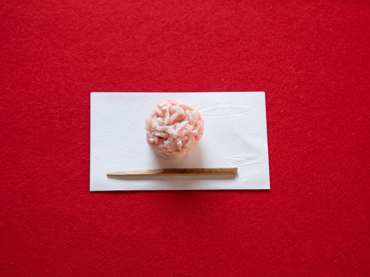 └和三盆:和三盆糖をふるいにかけ、型にはめて、型抜きして、練り切りは白あんに色をつけ、手や道具で形を整え、季節のモチーフを表現する工程をご体験いただけます。