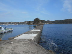 下田公園下から東に突き出す防波堤、長く伸びたその先に犬走島が在ります。防波堤では釣りを楽しむ事が出来、島まで歩いて渡れる下田湾の景観スポットです。
