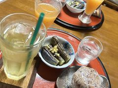 古民家の雰囲気も良く、入浴後も快適に過ごすことができました。私は毒出しジュースを頼んだのですが、ハーブティーに少しお砂糖が入っているような味でした。他にも人参ジュース、玄米のおにぎり、ナスの醤油浸しがサービスで付いており、とても美味しく、とても満足出来ました。