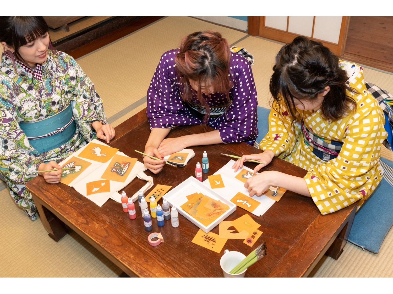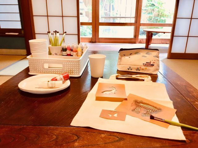 【金沢|工芸にふれるものづくり】ステンシル*染色体験〜染色作家・宮嶋千恵さんのカワイイ型紙で〜ハンカチ・ポーチ・トートバッグから選べる体験♪