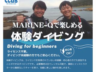 ライセンス不要。体験ダイビング 初心者OK!【ダイビング未経験の方でもご安心ください】MARINE-Q