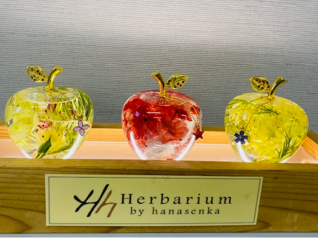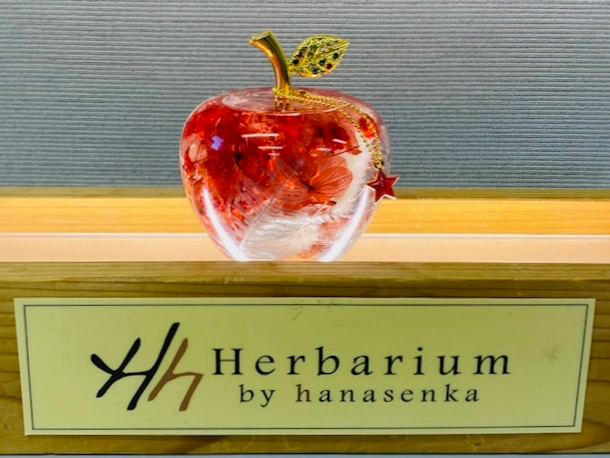オリジナルプラン人気1位!《花カフェ特典付き》★くだもの王国山形で幸運りんごのハーバリウム作り体験(大サイズ80×66mm)★店内カフェで好きなコーヒー・お茶を楽しみながら作れます(おかわり特典付き)