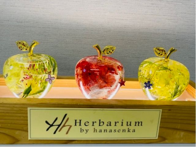 《人気1位》当店オリジナル★くだもの王国山形で幸運りんごのハーバリウム作り体験★好きな色や花からから選んで作れます!お花のプロと作れるから安心★3000人以上が体験!小さいサイズ(60・46mm)