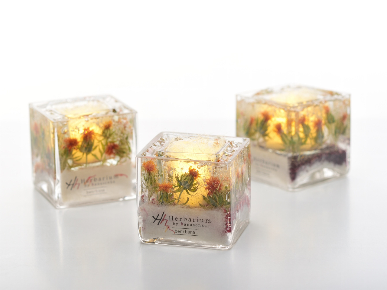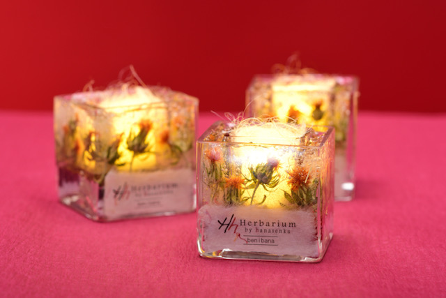 ●日本一の山形県産紅花を使ったボタニカルハーバリウムLEDキャンドル作りが体験できます。