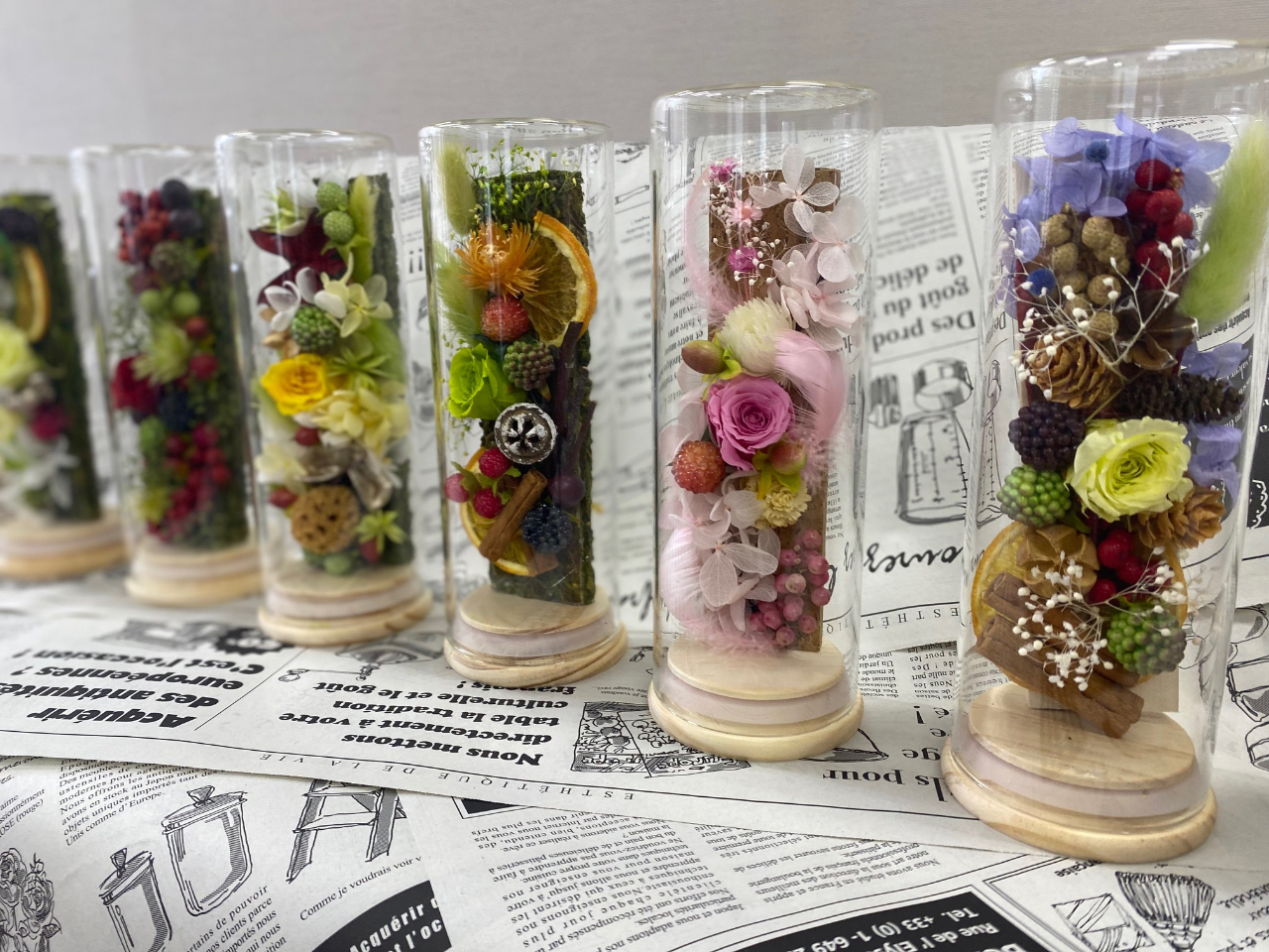 ●当店専用ワークショップルームにて、ゆっくり好きな色や花を自由に選んで素敵なハーバリウムが作れます☆フラワーアレンジメント・ガーデニング