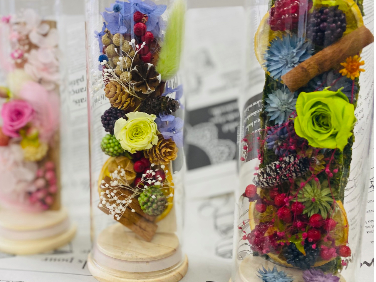 ●お花屋さんの技術を使って親切丁寧にご指導いたしますので、誰でも綺麗なハーバリウムが作れます。