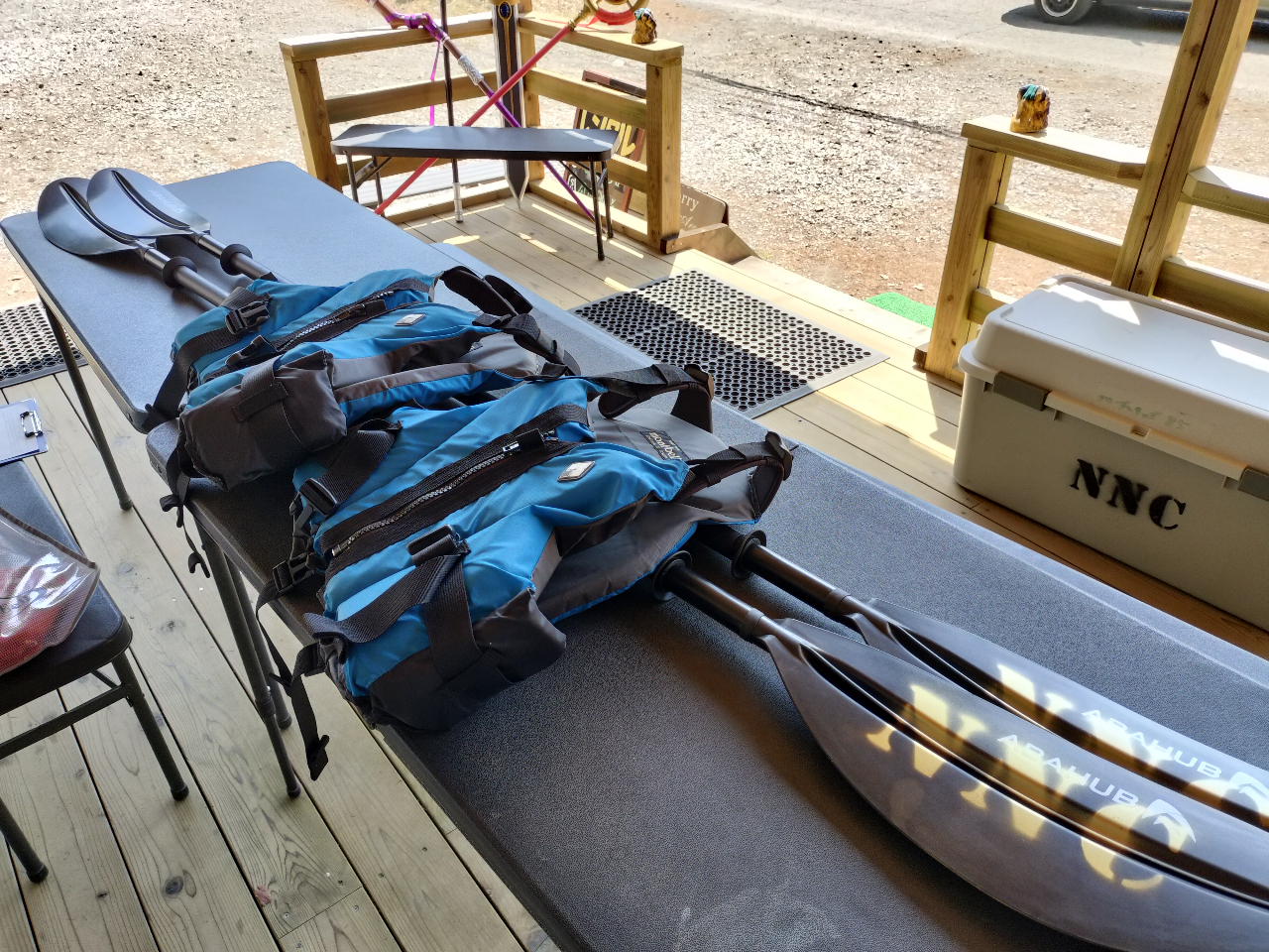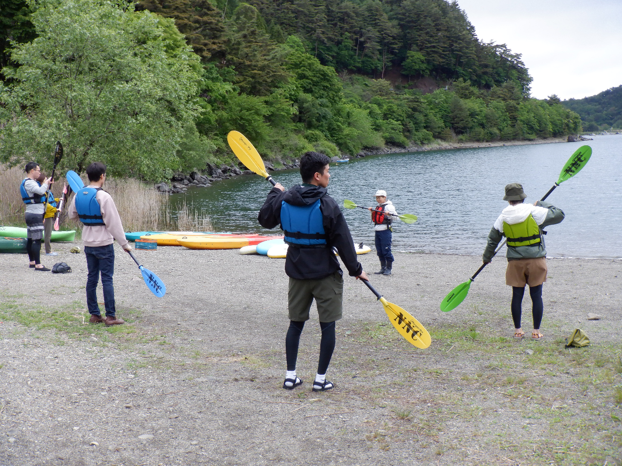 受付にてパドル、ライフジャケットを渡します