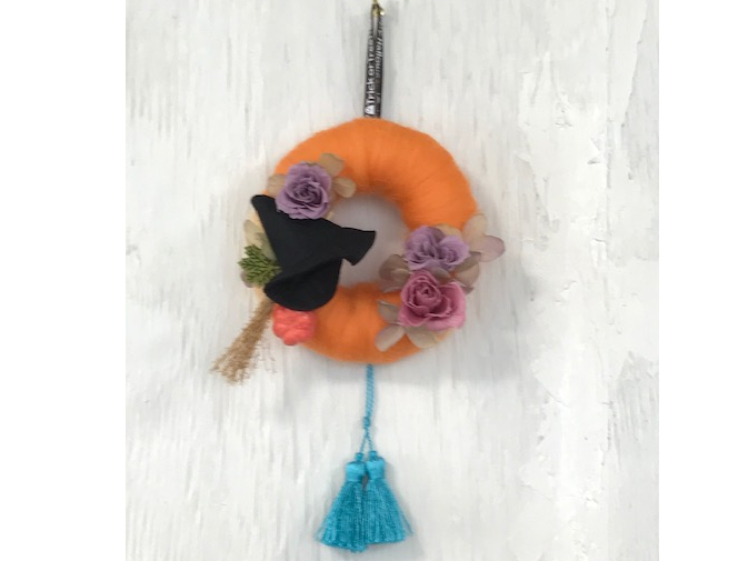 ドーナツ型のベースにオリジナルカラーの羊毛フェルトを巻付けて、プリザーブドフラワーやオーナメント(クリスマス)などを配置した、リースアレンジメントです。