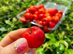 沖縄旅行で果物狩りを探していたところ、アセロラ狩りを見つけました。那覇からも近く、ひめゆりの塔のそばでした。午前少し雨が降って土がぬかるんでいましたが、靴が汚れないようにカバーを用意してくださったので大変助かりました!摘んだアセロラは持ち帰ることができました。ジュースにしたり、ジャムにしたりと食べ方を教えていただいたので、自分でも作ってみようと思います!とにかく農家さんが優しく、サービスが素晴らしかったです!!アセロラの季節(夏)にはここがオススメです!!