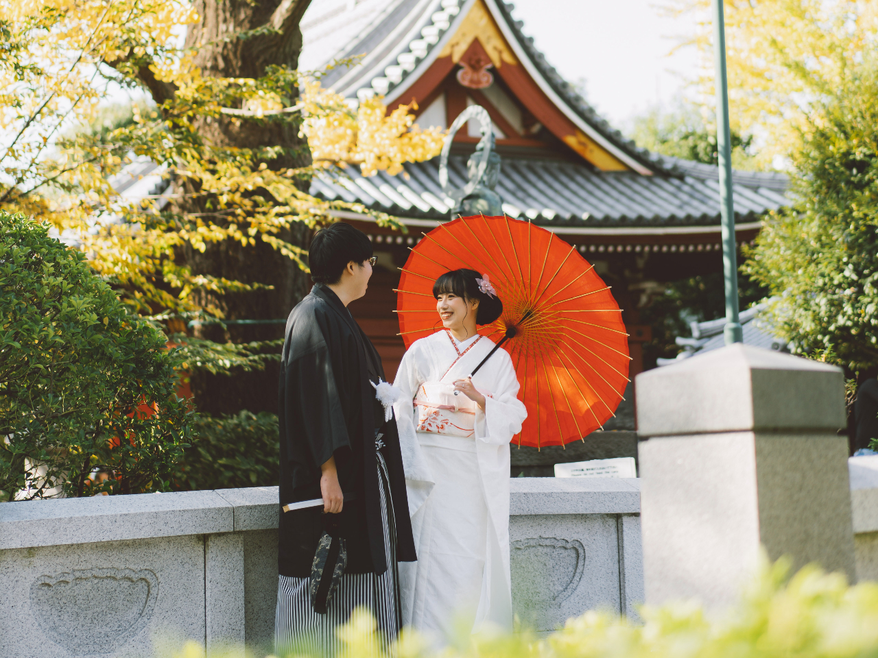 東京浅草旅行に着物結婚記念写真撮影プラン着付け小物フルセット!浅草寺から徒歩3分♪
