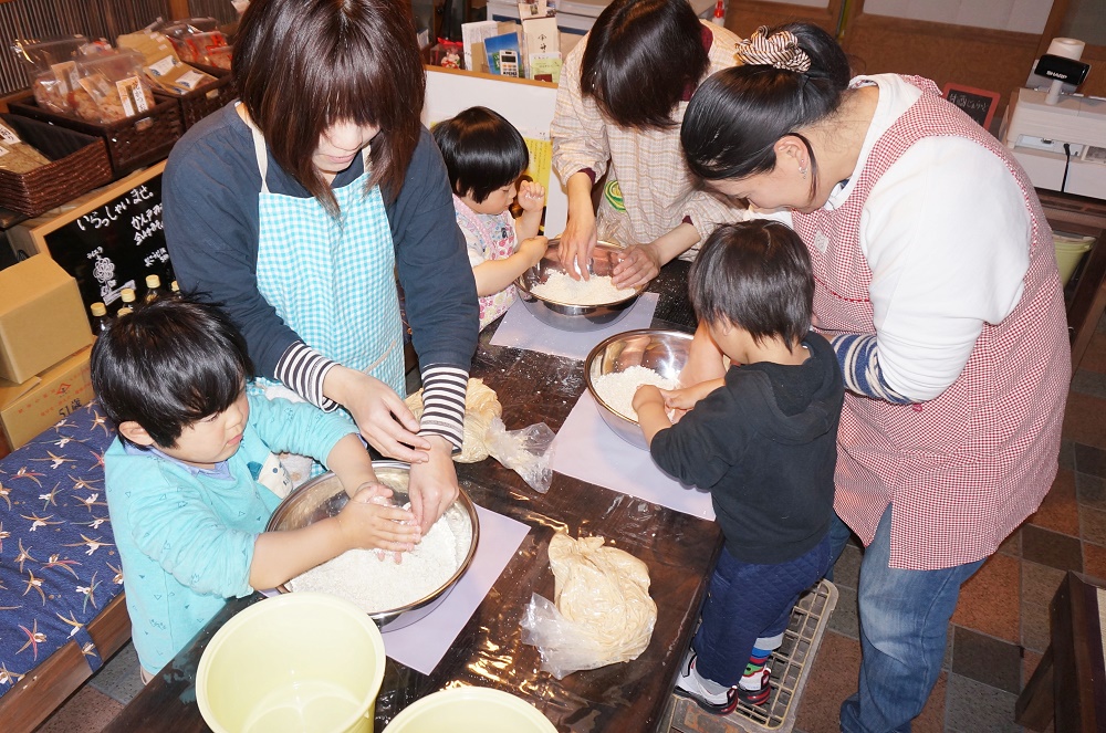 ふっくら蒸した大豆を味見させて頂き、大豆を細かく潰したり、米麹と粗塩と混ぜたり、大人2人でも充分楽しめました。