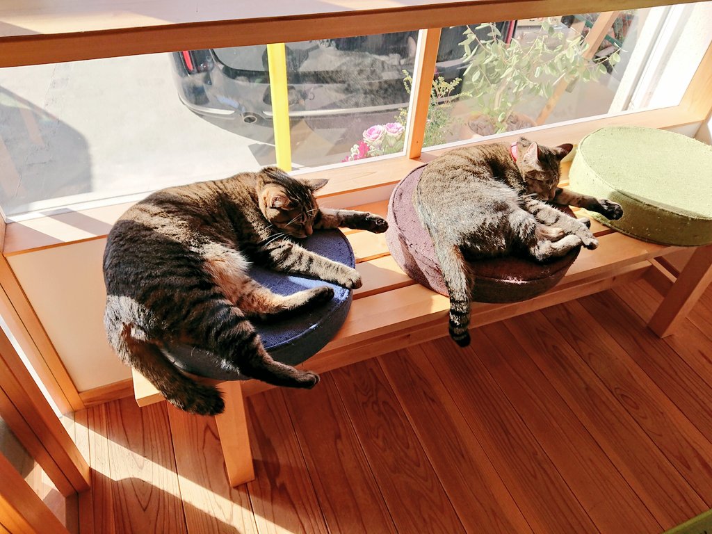 木のぬくもりに包まれた部屋で、かわいい猫たちに囲まれ癒やされながら、のんびり素敵